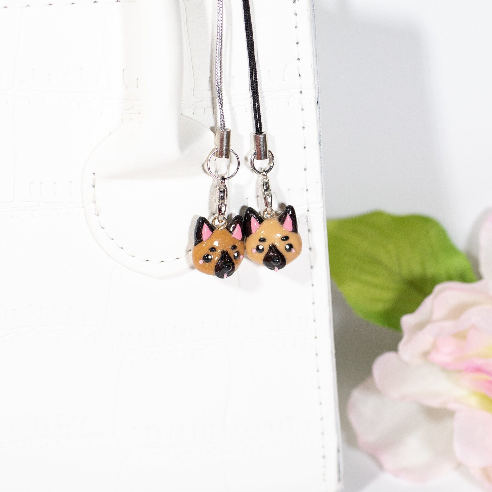 Cute and simple German shepherd clay charms! 🐾 These little charms have tiny details, like blushing cheeks and a tongue that sticks out. German shepherds are one of the most popular dog breeds in the world. Available in two shades: tan and brown.